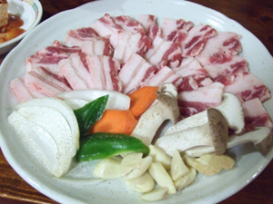 メイン料理には黒豚のサムギョプサル(バラ肉の焼肉)を選択。