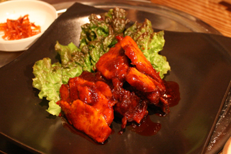 テジカルビの先端、バックリブを辛めに味付けて焼いた料理。