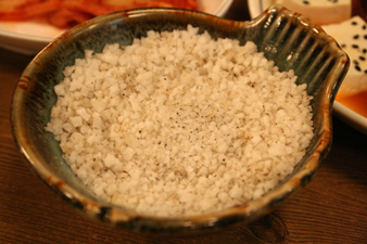 肉の上から振り掛ける塩は、莞島産の粗塩。