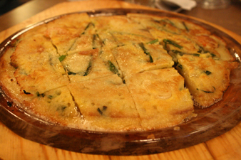 チヂミも定番料理ですが、ひとつ違うのはこれまた焼き板。