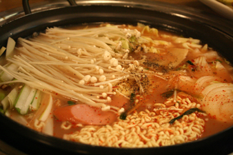 鍋はプデチゲ(ハムやソーセージの鍋)と、