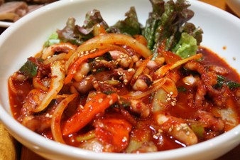 定番の家庭料理から、まずは冒頭のナクチボックム(タコ炒め)。