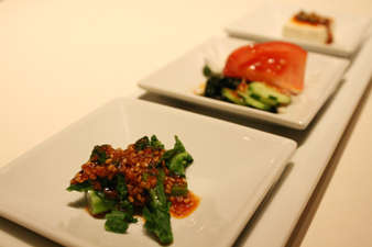 菜の花のヤンニョム和え、トマトとワカメのサラダ、