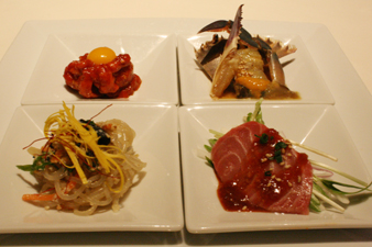 右下がマグロの脳天のフェ(韓国式刺身)。