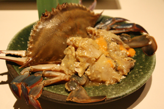 右上がカンジャンケジャン(ワタリガニの薬味醤油漬け)。