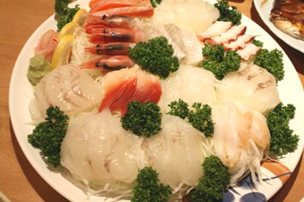ともかくもこんな感じの刺身が大皿で出てきます。
