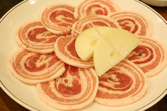 その見事さに感動しつつ、サムギョプサル(豚バラ肉の焼肉)や、