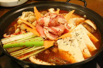 自家製の白菜キムチがたっぷり入ったキムチチゲ。