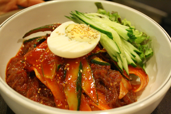 ピビムネンミョン(薬味ダレをかけて食べる冷麺)はサービス。