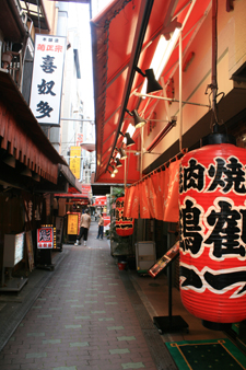 駅を出てすぐ。アーケードに覆われた細い路地群は、