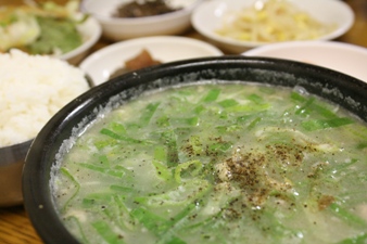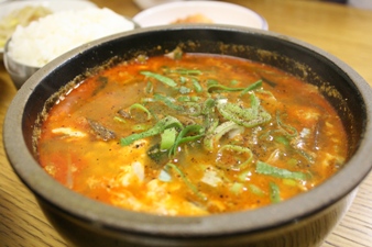 奥さんが頼んだユッケジャン(牛肉の辛いスープ)も。