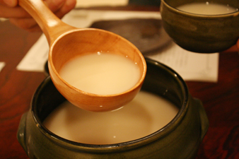 また、口に運んで適度に香りが鼻へまわったら、マッコルリをグビー。