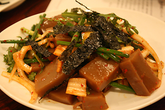 トトリムクムチム(ドングリ粉を固めたムクと野菜の和え物)。