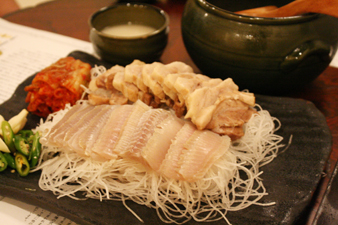 韓定食店などで出される上品なイメージのホンオフェに近いかも。