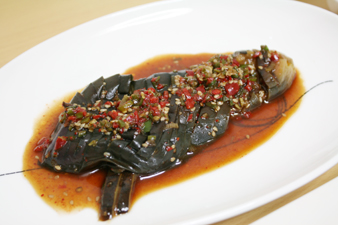 韓国式の薬味醤油をかけた焼きナスですが、これがまあ美味い!
