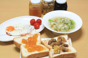 この食卓風景で見て頂きたいのはパンの上のジャム。