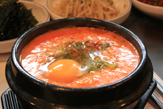 スンドゥブチゲは押し固めずに作る柔らかな豆腐の鍋料理。