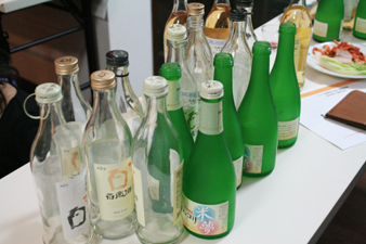 ひょうたん型のボトルは韓国でしか飲めない非加熱の「生百歳酒」。