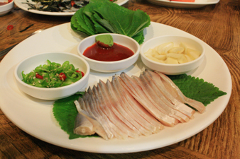 僕も初めて食べました。ピョンオフェ(マナガツオの刺身)です。
