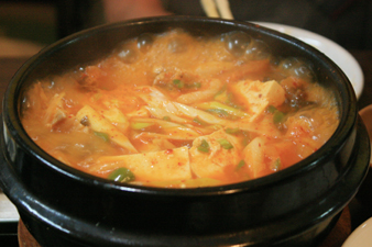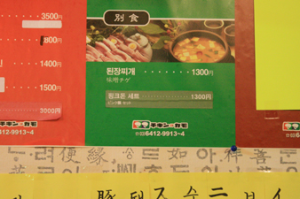 テンジャンチゲ(味噌チゲ)の下に「ピンク豚セット」の文字。