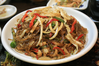 細切りにしたオデンを乗せたチャプチェ(春雨炒め)や……。