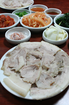 写真は豚肉を茹でてスライスしたテジスユクです。