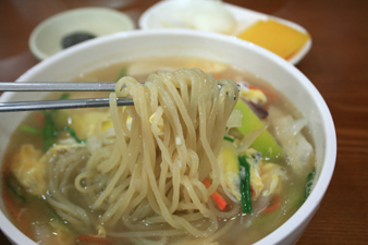 日本の焼肉店で食べる、温麺に近い印象を受けました。
