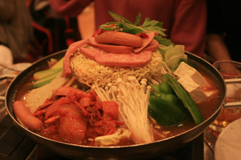 プデチゲ(ハムやソーセージの鍋)へと進みました。