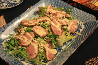 年末の築地で買ってきた鴨の燻製をスライスし、
