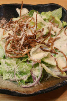 登場したのは揚げ蕎麦のサラダに始まり……。