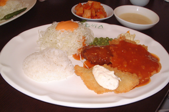 専門店で出される韓国式トンカツとフライの盛り合わせ。