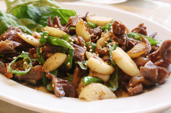 お母さん自慢の砂肝炒めなどもつつきつつ。