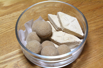 米粉を原料に椰子蜜で甘味をつけ、香辛料で香りを補充。