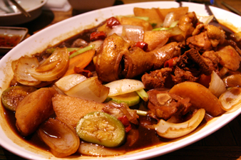 醤油ベースの甘辛いソースで煮た料理がチムタクです。