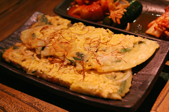 鶏料理の専門店だけに、パジョン(ネギ焼き)にも鶏肉が。