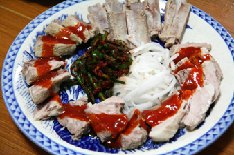 ソースには海龍ブランドのチョジャン(唐辛子酢味噌)ソースを使用。