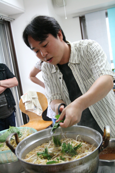 ドラマの中に登場したソンチャン式のラーメンを実演しました。