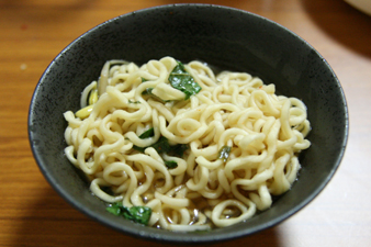 ・麺がほぐれてきたら緑茶葉を2つまみ入れる