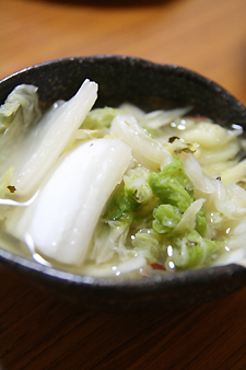 粉唐辛子を使わず、白い状態で仕上げるペッキムチの一種。