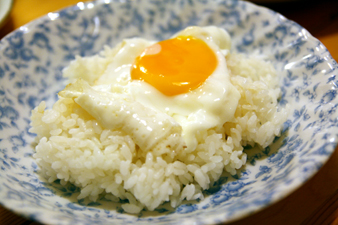 ごはんにゴマ油をかけて、目玉焼きを乗せてあります。