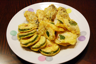 エホバク(カボチャの未熟果)、白身魚、牡蠣の3種類を、