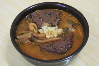 ソンジククにも似た牛ベースのスープで、牛肉または牛の血が入ります。
