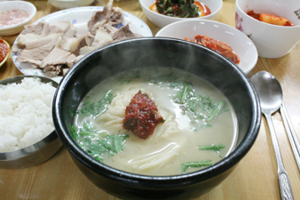 コムタンは牛骨、牛の内臓などを煮込んだスープ料理で、