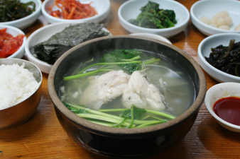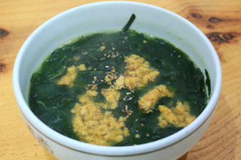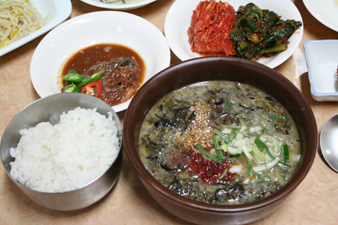 済州島はモムククと呼ばれる海藻入りのスープごはんが有名。