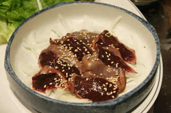 甘味濃厚な平牧金華豚レバーのタタキ。