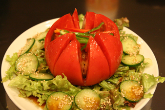 店の新たな看板料理も、新鮮な野菜をたっぷり添えた……。