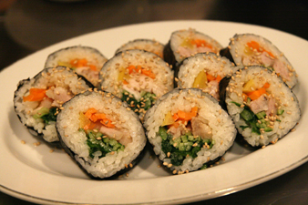 テンジャンで煮込んだ豚肉入りのキムパプ(海苔巻き)を頂きました。