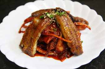 新橋「チェゴヤ新橋店」でウナギ焼きのムチム。