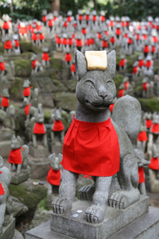 敷地内には霊狐塚には狐の石像が大量に安置されており、