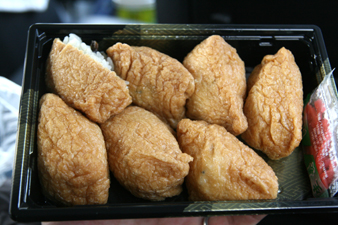ちょっと色の濃いこちらが「元祖いなほ稲荷ずし」の稲荷寿司で、